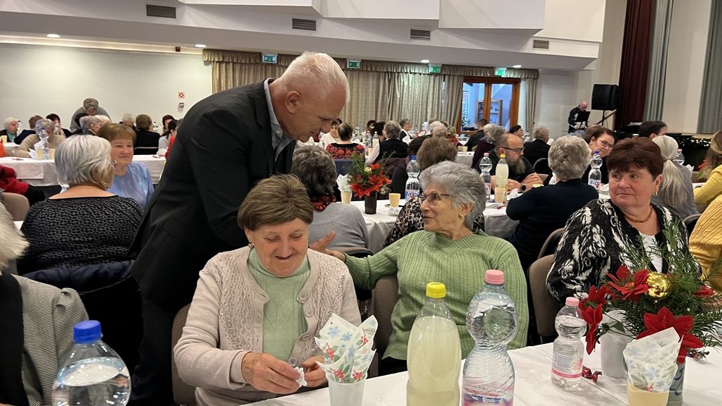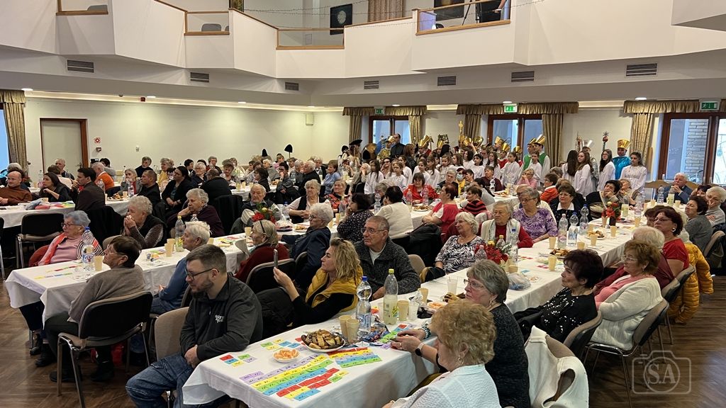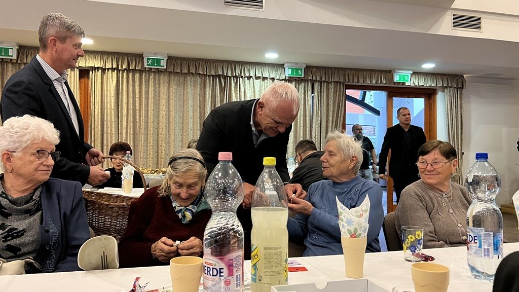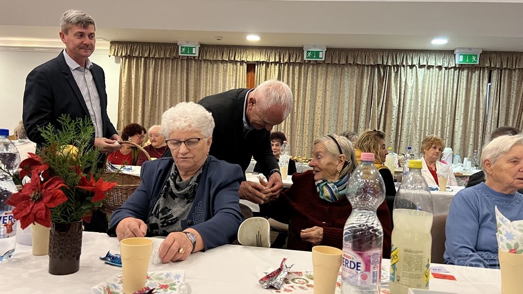 A város vezetője karácsonyi ünnepi gondolatait osztotta meg a jelenlévőkkel, majd ünnepi jókívánságai mellett Domonics János alpolgármester közreműködésével kis angyalkákkal ajándékozta meg a résztvevőket.