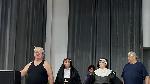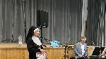Bemelegítésnek egy verset hallhatott a közönség Sisák Istvánné Erzsikétől, majd a színpadra szegeződtek a tekintetek, ahol gyanúsnak tűnő apácák tűntek fel.
