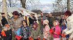 A finomságok elfogyasztása után a felvonulók visszatértek a Faluházhoz, ahol az óvodások tűzcsalogató tánca és a kiszebáb elégetése szimbolikusan is jelezte: a falu készen áll a tél búcsúztatására és a tavasz fogadására.